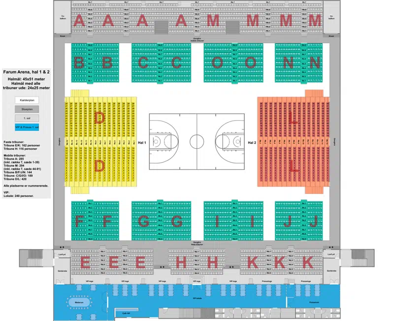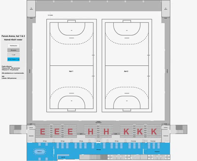 Farum Arenas hal 1 og 2 er det oplagte valg, hvis du leder efter en facilitet til et stort arrangement. Hallen tilbyder plads til op mod 3.500 deltagere og er egnet til TV-transmissioner, VIP-adgang og presse.